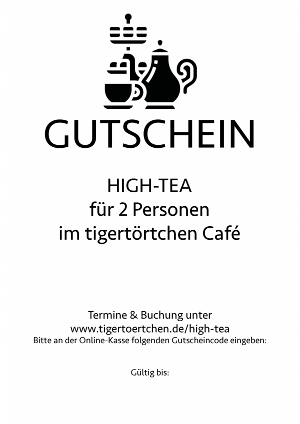 Dieser Gutschein kann für die Buchung einer High-Tea Etagere (inkl. 2 Getränke) eingesetzt werden. Auf unserer Webseite bieten wir regelmäßig High-Tea Termine für unser Café in der Chausseestraße 60 an.